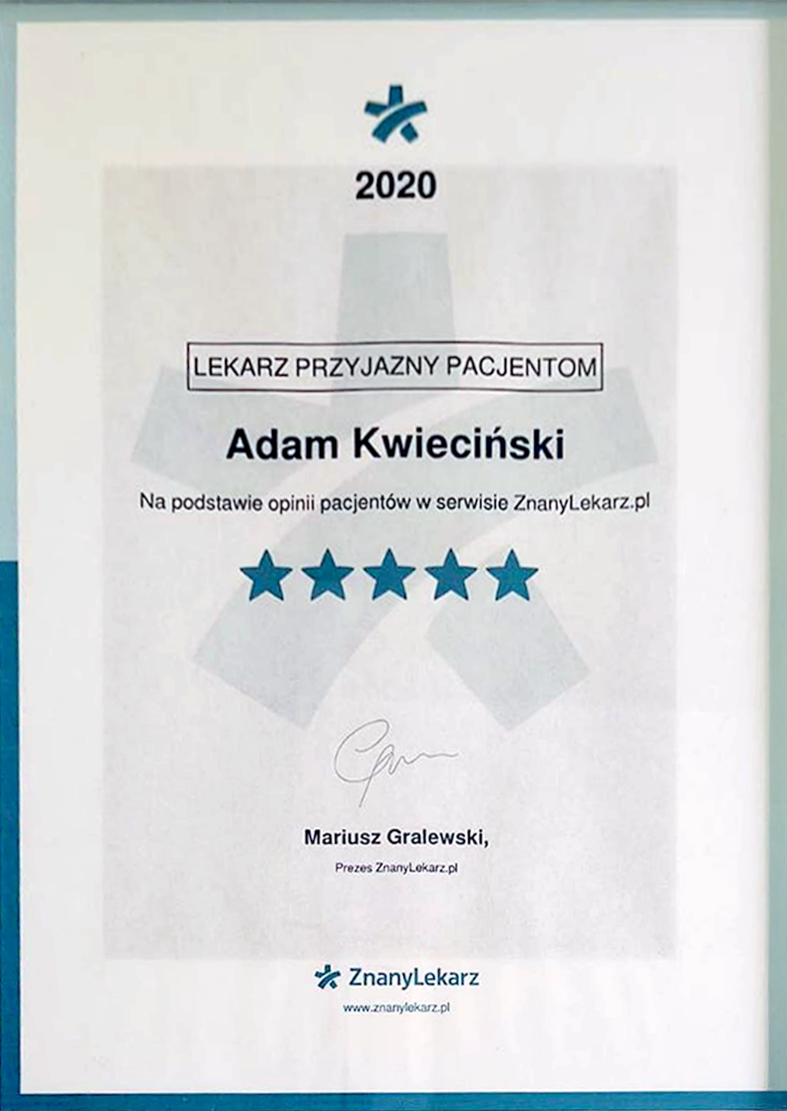 "Leczyłem u doktora reumatoidalne zapalenie stawów... do dziś jestem mu wdzięczny za profesjonalizm i opiekę jaką mnie otoczył. Bóle doprowadzające do tego, że prawie nie wychodziłem z domu były okropne, a doktor Kwieciński pozwolił mi wrócić do normalnego życia. Wszystkim polecam tego lekarza!"