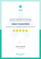 "Do dziś jestem wdzięczna lekarzowi za pomoc... ale także za zrozumienie, za dokładne wytłumaczenia wszystkich aspektów związanych z chorobą. To wspaniały lekarz, zaangażowany w swoją pracę, empatyczny, profesjonalny. Polecam doktora Kwiecińkiego każdemu, kto szuka pomocy w leczeniu boreliozy."